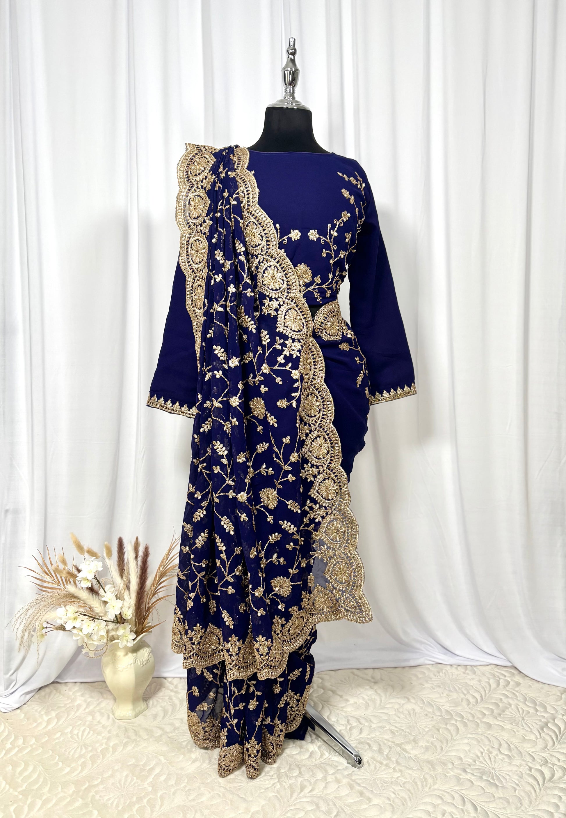 Saree à prêt à porter/ One minute saree - Nuit Dorée